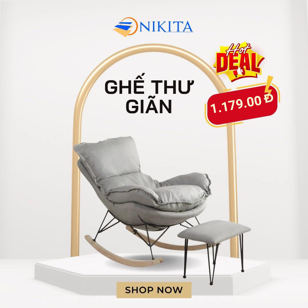 Ghế Bập Bênh Đơn Thư Giãn (NKT – R190 màu Xám) kèm đôn ghế để chân tại Nikita Việt Nam