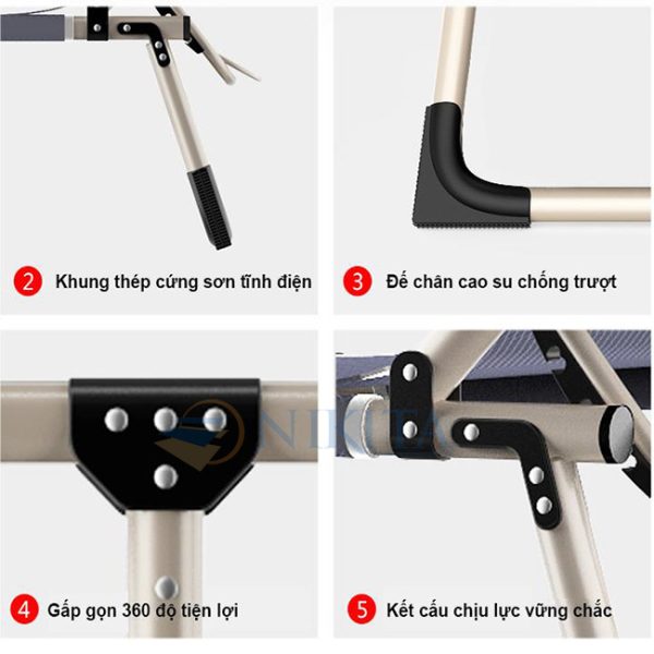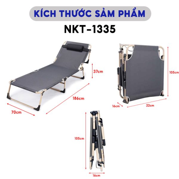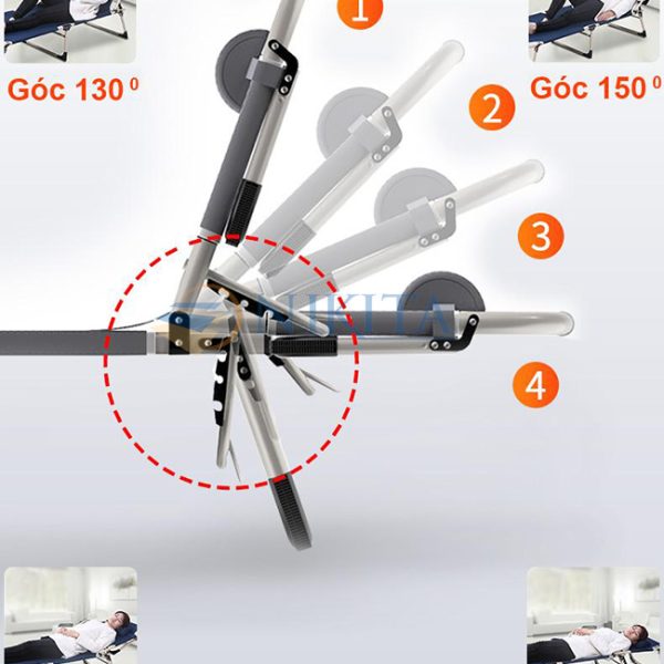 Giường xếp NKT-1335 không chỉ cung cấp chế độ nằm thẳng thoải mái mà còn được tích hợp 3 cấp độ nâng đầu (160 độ, 150 độ, và 130 độ). Điều này giúp đáp ứng linh hoạt các nhu cầu sử dụng, từ việc ngủ nghỉ đến thư giãn hoặc đọc sách.