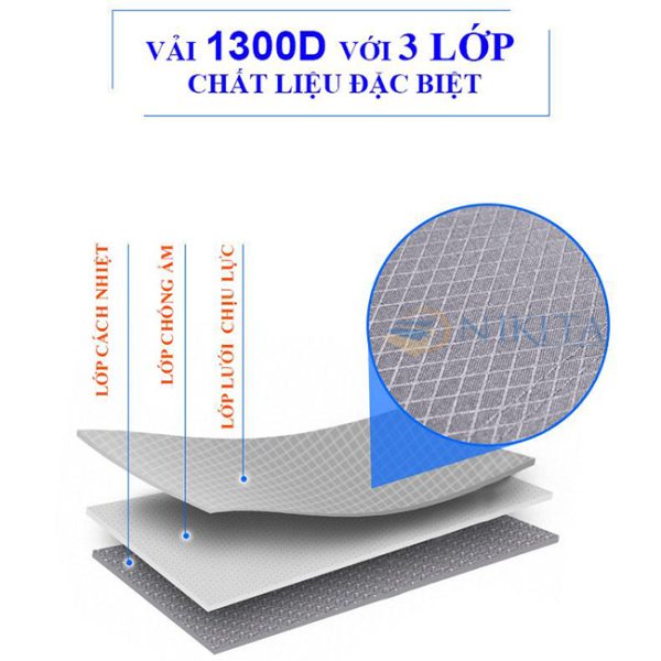 Chất liệu vải bạt: Bạt 1300D cao cấp với 3 lớp đặc biệt: lớp cách nhiệt, lớp chống ẩm, và lớp lưới chịu lực.