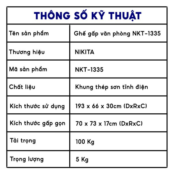 Thông số kỹ thuật của Giường xếp Nikita NKT-1335