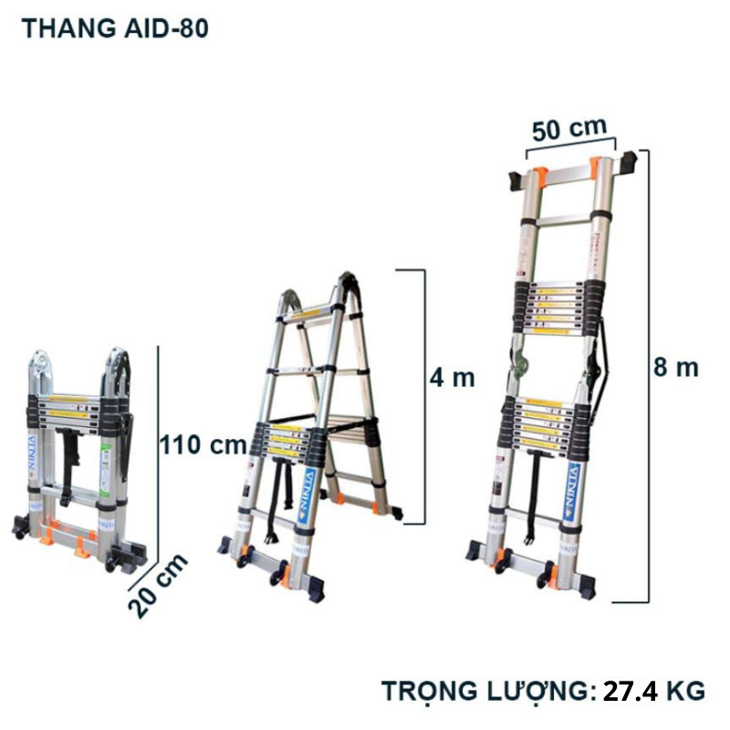Thang nhôm rút đa năng Nikita sử dụng thông minh chữ A và chữ I bằng những thao tác rất đơn giản.